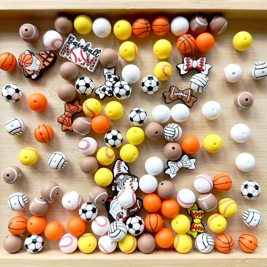 110Pcs Assorted Soccer American Football Baseball Sport Silicone Beads