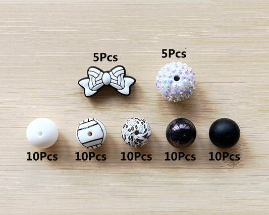 60Pcs Volleyball Assorted Beads, Loose Silicone Beads Bulk