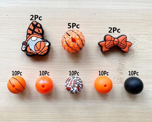 59Pcs Basketball Assorted Beads, Silicone Beads,Bubblegum Beads