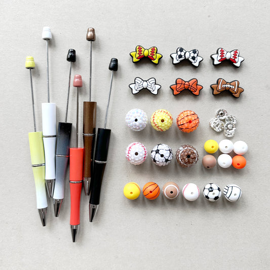 6Pcs Sport Ball Theme Beadable Pen DIY Kit