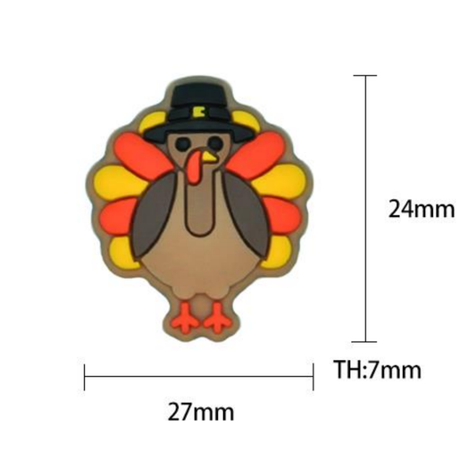Silicone Thanksgiving Day Turkey Focal Beads 24*27mm