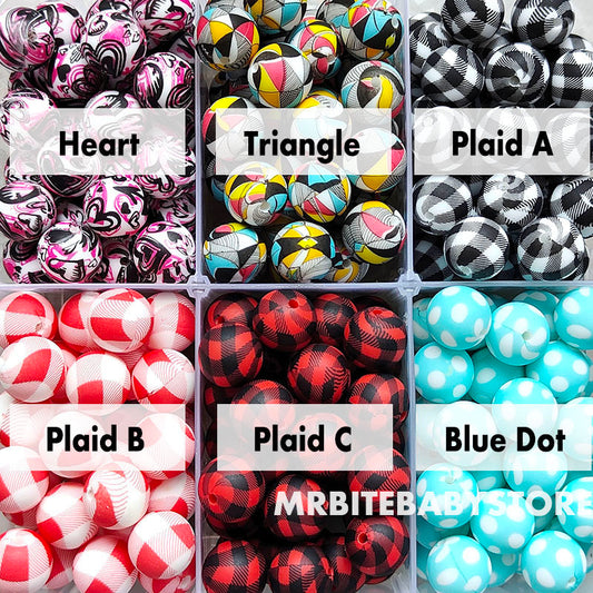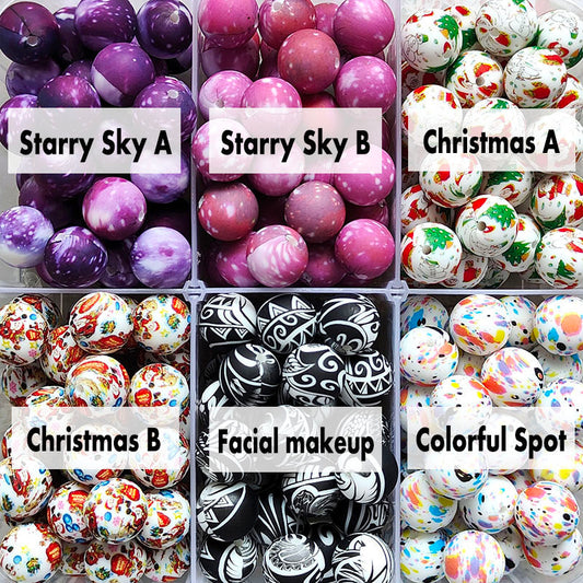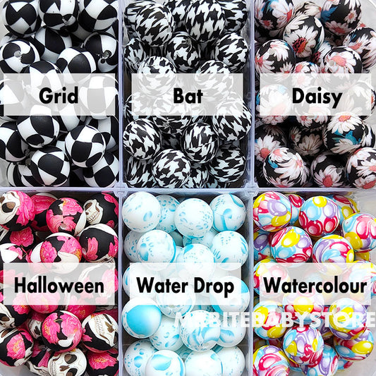 12/15mm Print Silicone Beads, #25 - #48