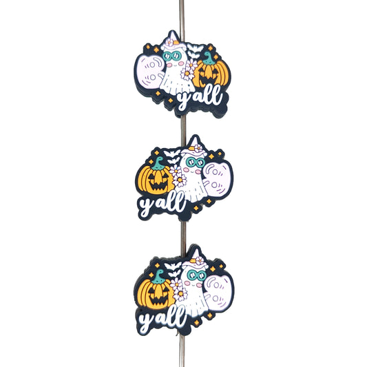 15mm Spooky Ghost Print Round Silicone Beads