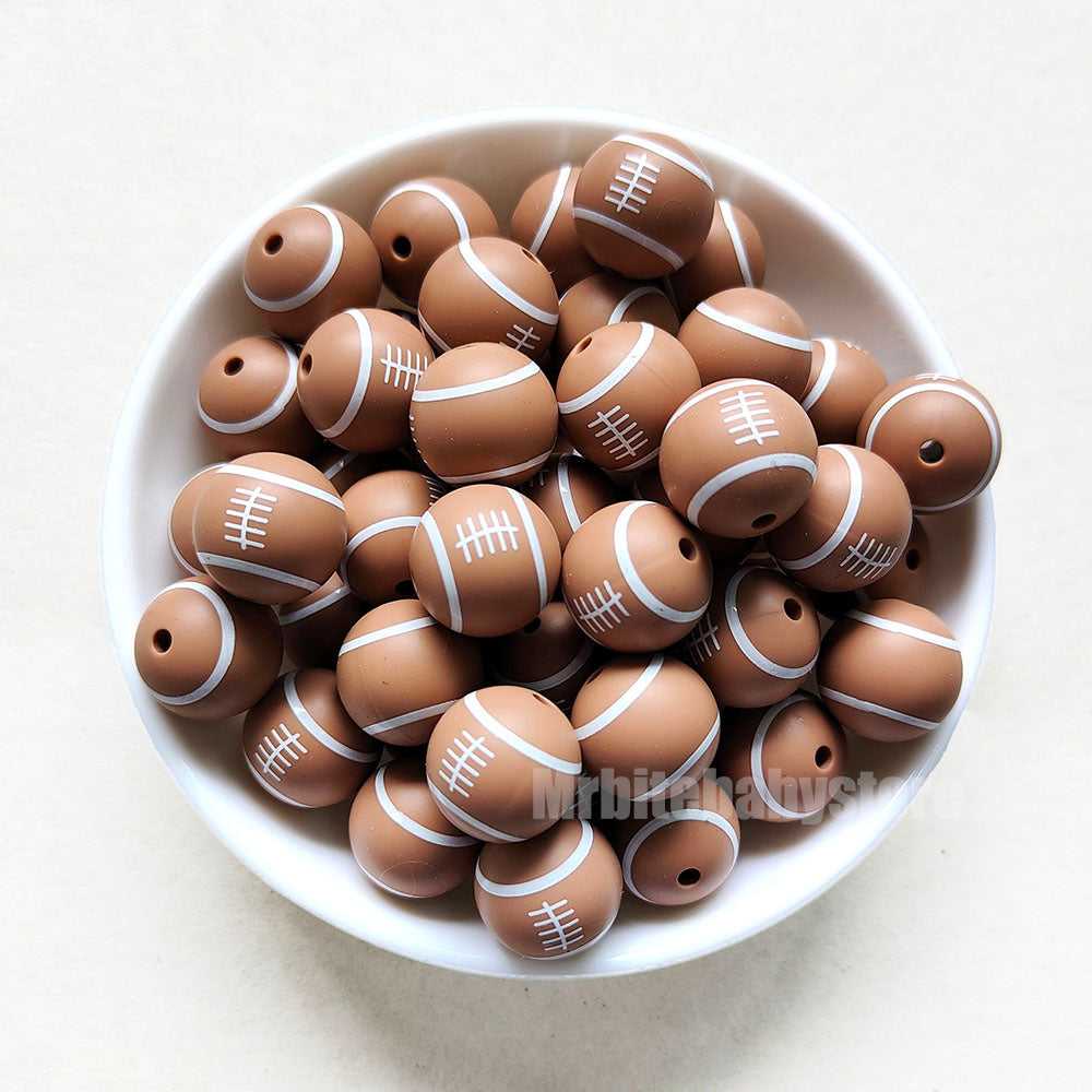 15mm American Football Print Silicone Beads - Round