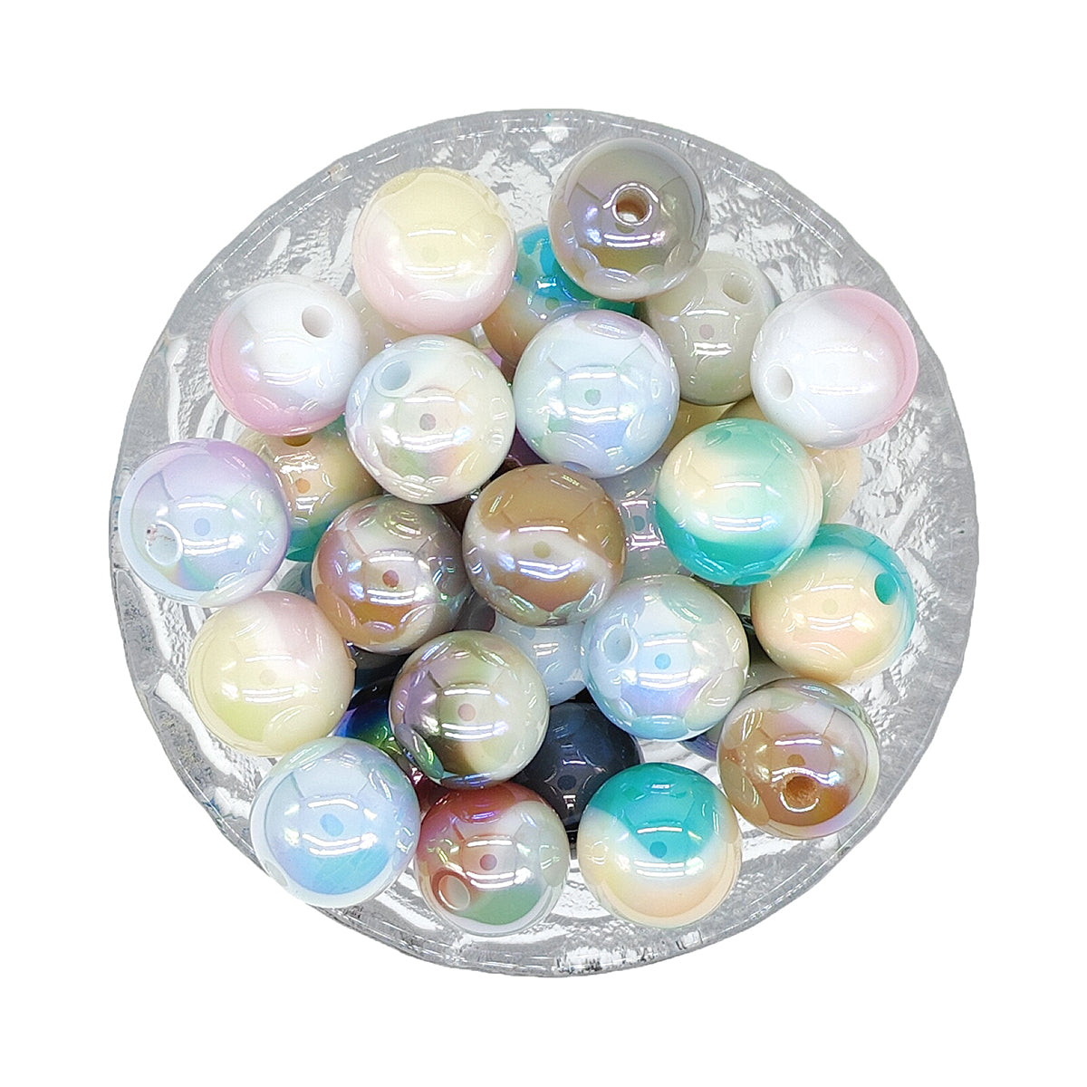 16mm Round Iridescent Marble Bubblegum Acrylic Beads