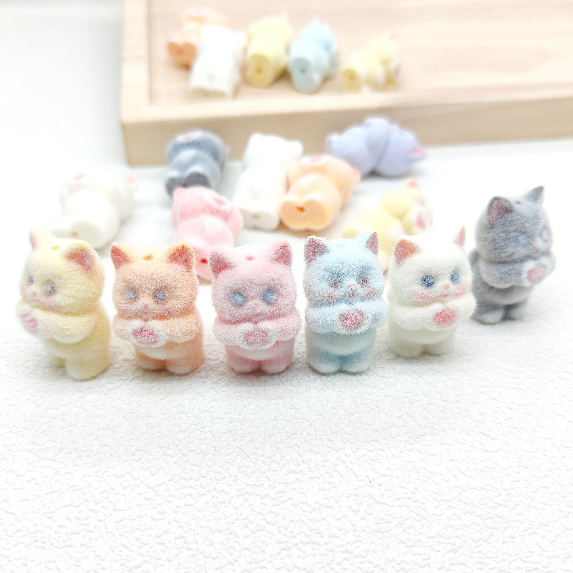 3D Flocked Love Cat Acrylic Beads DIY Jewelry,Mixed Color Beads