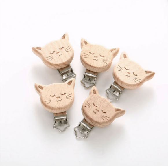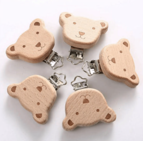 Engraved Wooden Animal Pacifier Clip